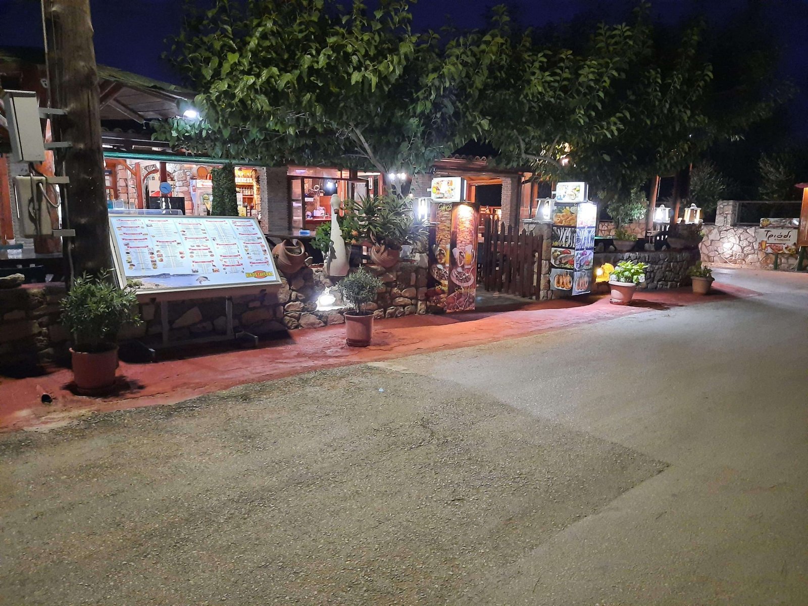 This pretty stone restaurant inside a well-kept garden is run by Nikos and his family who are waiting to give you a warm welcome and tempt you with their delicious cuisine. Traditional, home made Greek dishes and selected local specialities, all prepared on site with fresh, quality ingredients, are waiting for you to taste. Families will feel welcome here as the restaurant features a playground as well as high chairs. Free parking is also available.